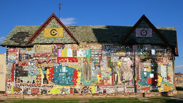 Occupying almost an entire city block, the Dabls Mbad African Bead Museum houses 18 outdoor installations as well as the African Bead Gallery, N'kisi House and African Language Wall.