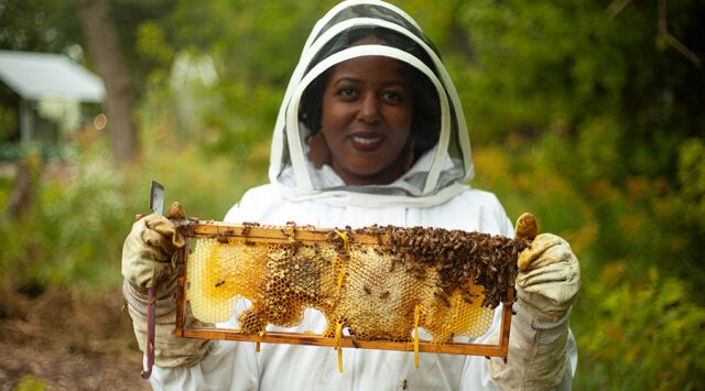 Experience urban bee farming through educational tours, local honey sales, and community revitalization efforts in a vibrant, inclusive green space.